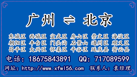 ????? 【廣州到北京物流專線服務細節(jié)】鑫富物流提供廣州到北京物流專線運輸、包車運輸,承運家具、電器、衛(wèi)浴具、家庭用品、行李包裹搬家托運??蓮膹V州越秀區(qū)、海珠區(qū)、荔灣區(qū)、天河區(qū)、白云區(qū)、黃埔區(qū)、番禺區(qū)搬家到北京東城區(qū)、西城區(qū)、朝陽區(qū)、海淀區(qū)、豐臺區(qū)、石景山區(qū)、門頭溝區(qū)、房山區(qū)、大興區(qū)、通州區(qū)、順義區(qū)、昌平區(qū)、平谷區(qū)、懷柔區(qū)、密云縣、延慶縣。